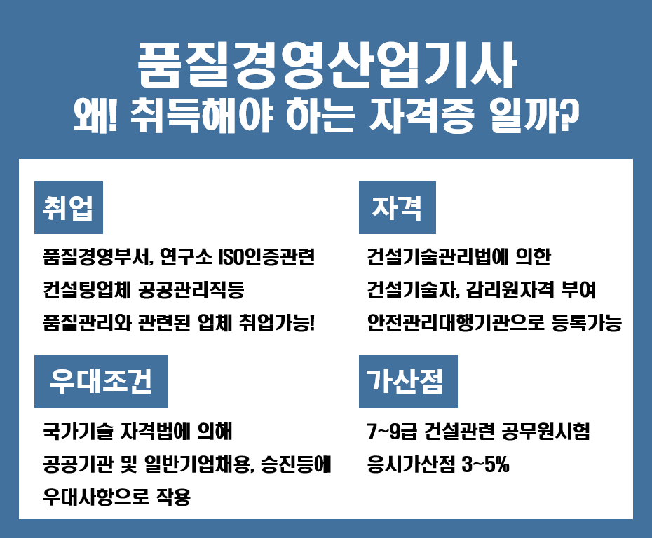 고등학교를 졸업한 나로서는 무엇을 해야 할지 막막했습니다. 국가 시스템을 이용하면 2년이 아닌 15주 안에 만들 수 있다고 해서 알아보기 시작했습니다. 그리고 플래너의 도움으로 계획대로 마무리할 수 있었습니다. 품질경영산업기사 시험에 응시했습니다. 자격증에 대한 정보를 찾고 계시다면 저처럼 바로 시험을 치를 자격이 없을 수도 있습니다. 지금부터 적어볼 학습 내용만 잘 참고하시면 학력이나 경력에 대한 걱정은 안 하셔도 됩니다. 이렇게 준비하는 방법이 궁금하시다면 끝까지 읽어주세요