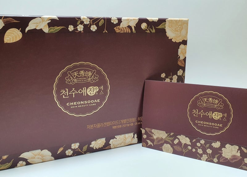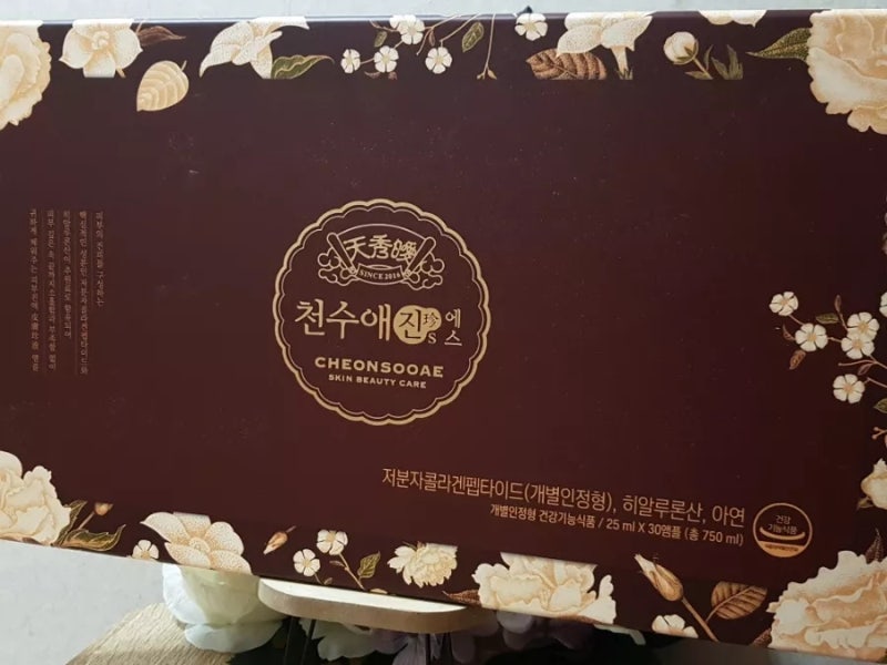 천수애진S는 콜라겐과 히알루론산을 주성분으로 엘라스틴을 부원료로 한 보틀 제품입니다. 사실 진피의 밀도를 높여주는 효과가 입증된 제품이라 더욱 믿음이 갑니다. 식품의약품안전처 인증을 받은 이중 복합 기능성 저분자 콜라겐 펩타이드를 국내 최초로 함유한 제품입니다. 약물 안전, 피부 보습에 도움을 주어 자외선으로 손상된 피부를 건강하게 유지시켜줍니다.