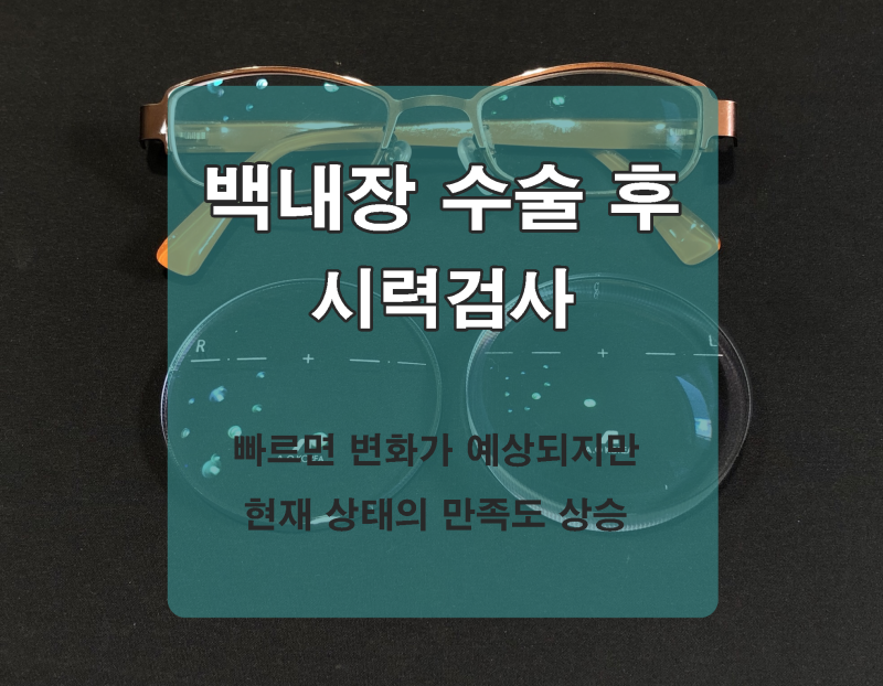 백내장 수술 후에도 레이저 시술을 해야 하는 후발성 백내장도 올 수 있는데 원시성 난시로 교정 시력은 잘 나오고 그런 경우와는 거리가 멀어요. 백내장 수술 후에도 안경으로 눈 건강을 지켜주세요.